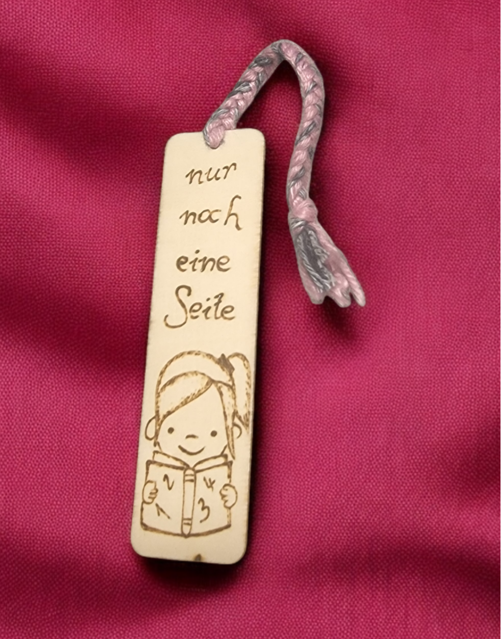 Dieses Lesezeichen ist gebeizt, so dass es auch mal leicht abgewischt werden kann.