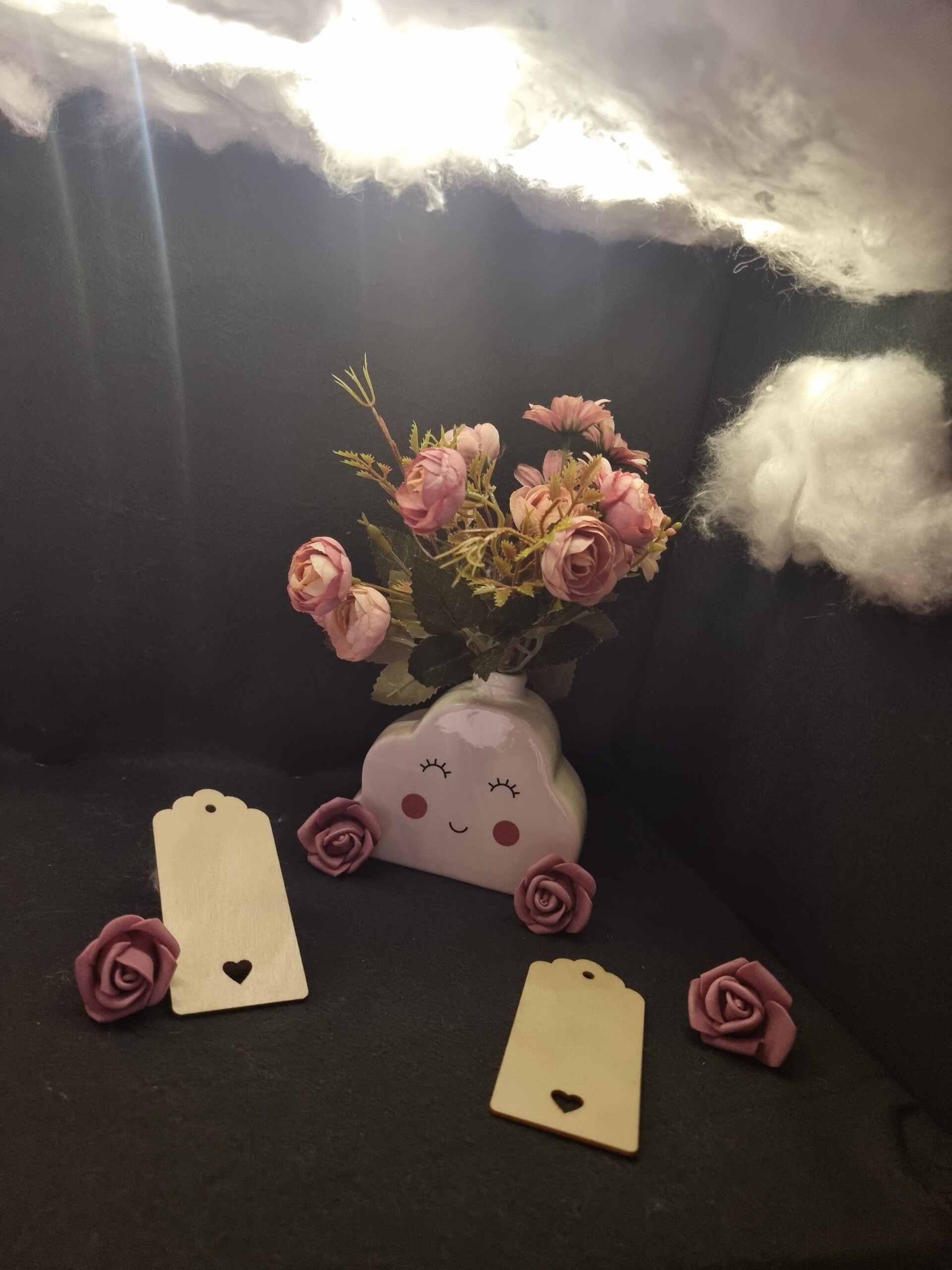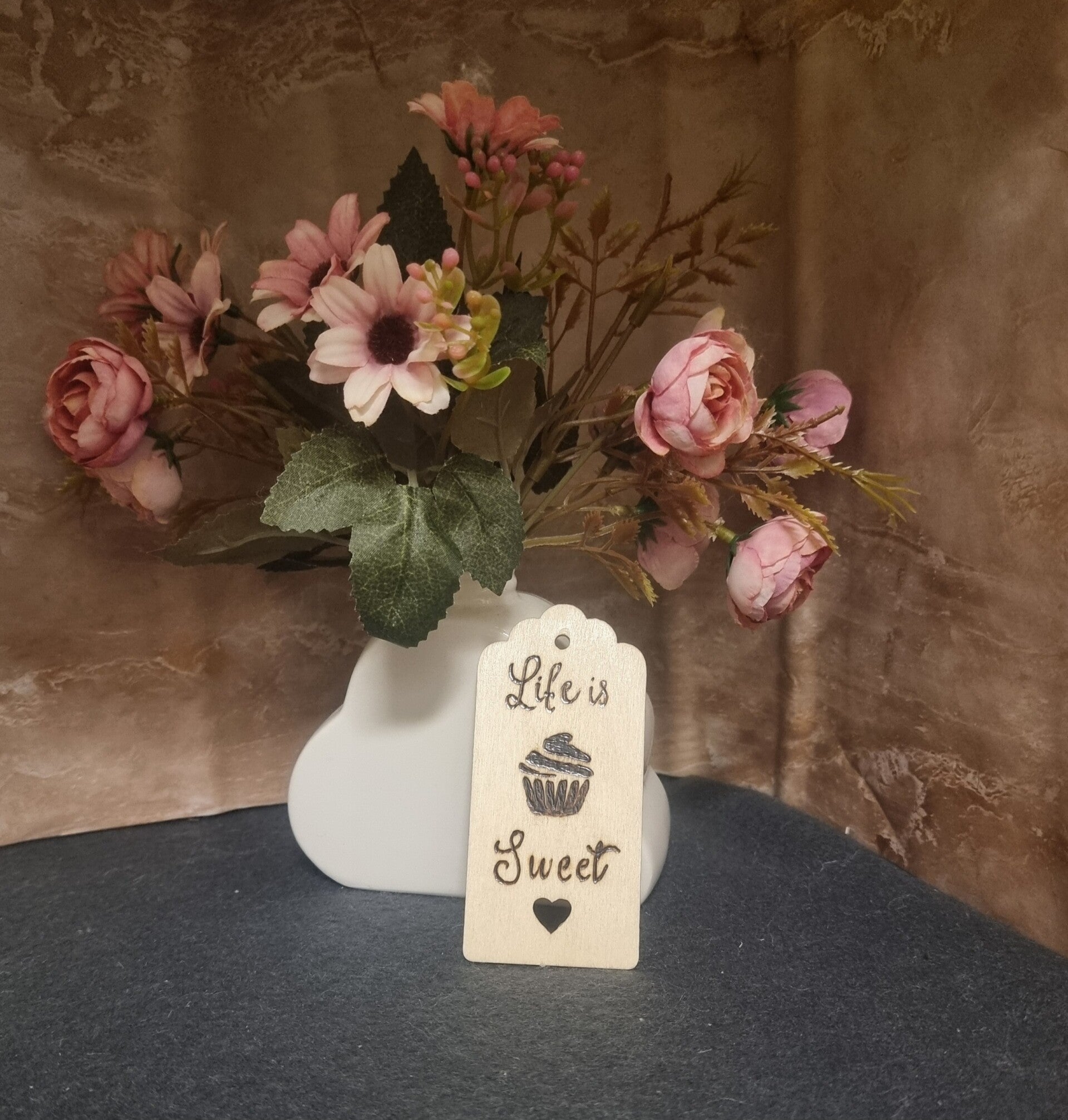 Diese kleine Küchendeko ist gebeizt, so das es auch mal leicht abgewischtg werden kann.