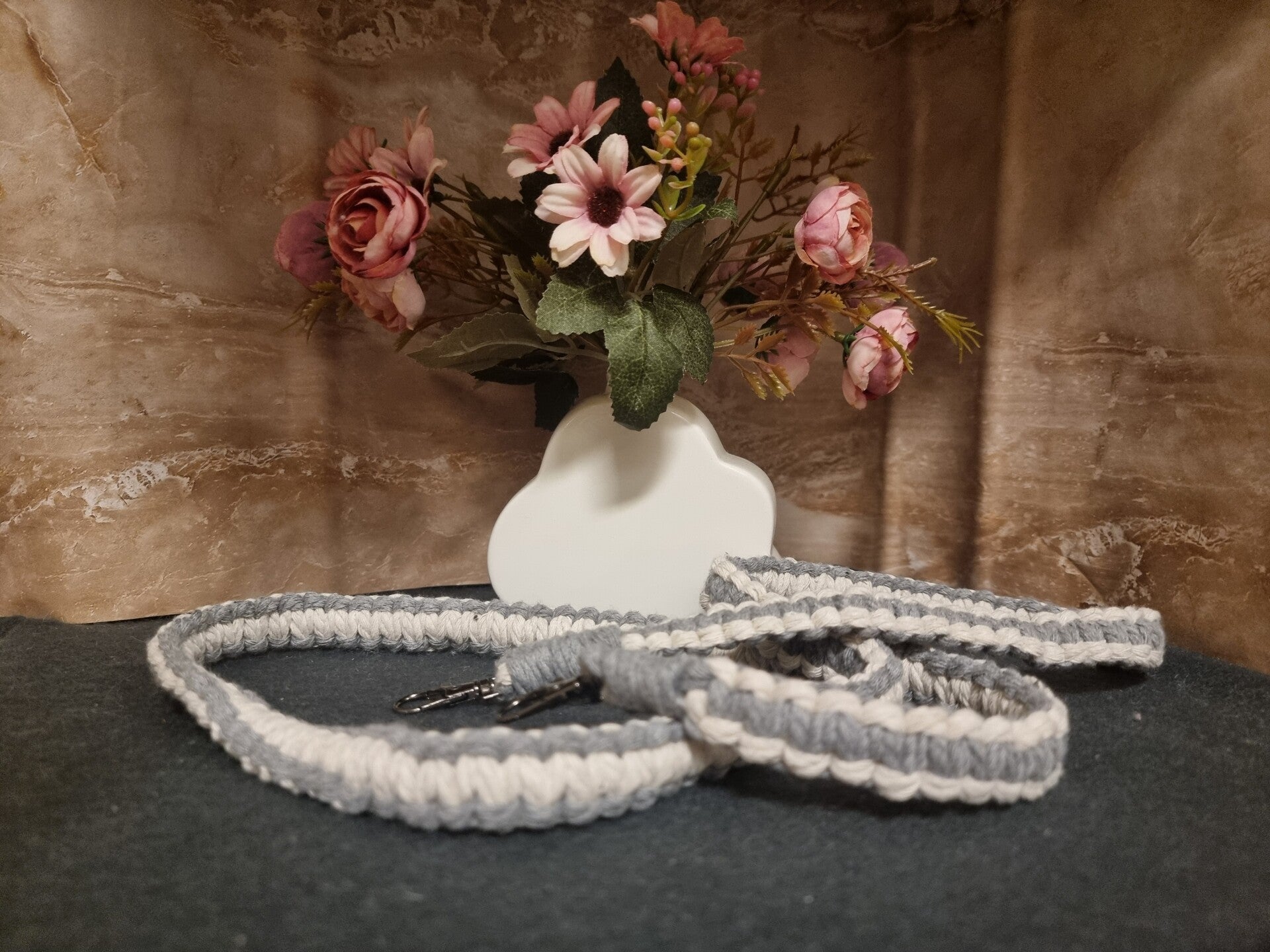 Die grau weiße ist vom Garn her etwas stabiler wie die rosane aber beide funktionieren super. Sie werden inklusive Karabiner geliefert.