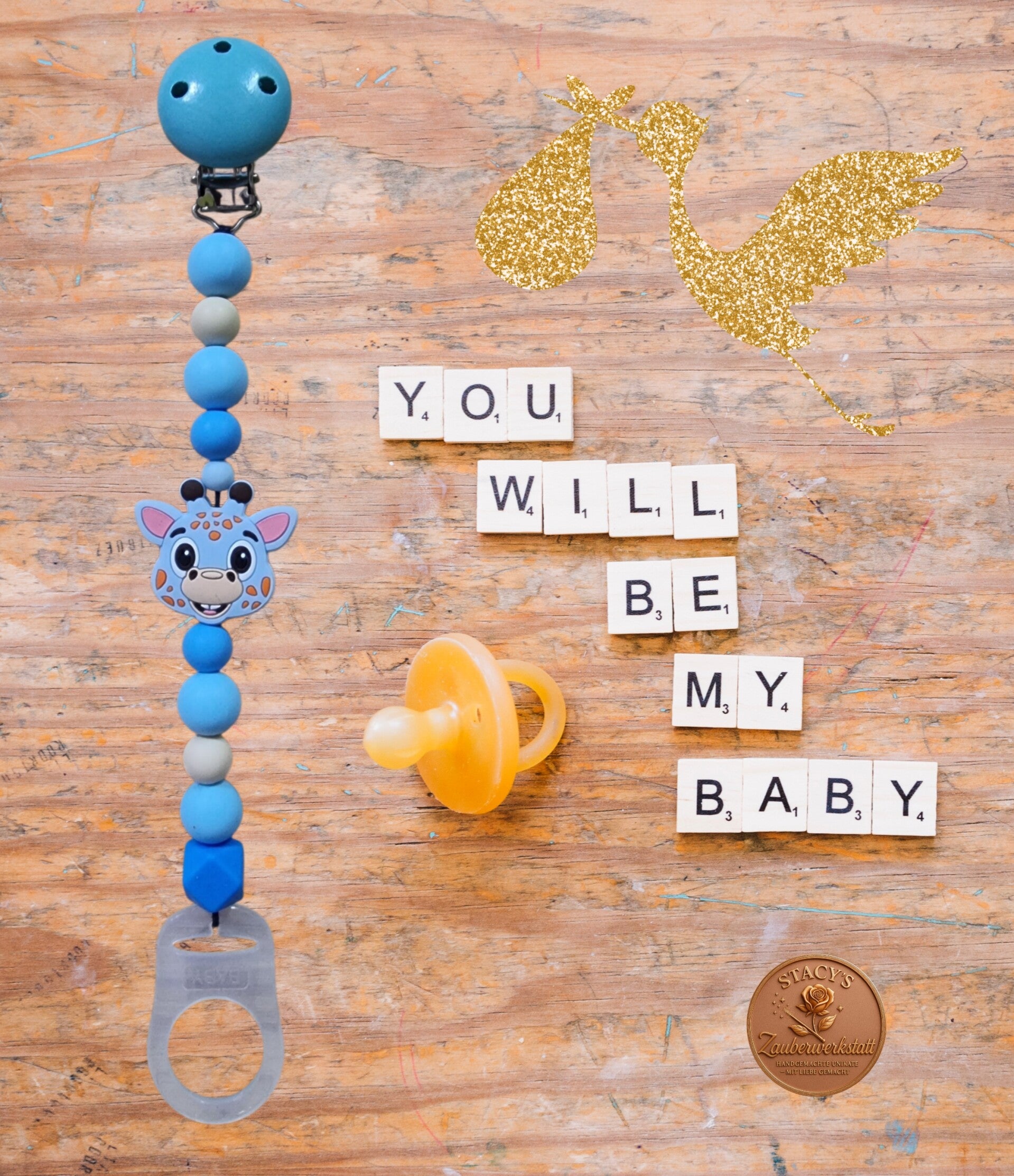 Zarte Schnullerkette in Rosa mit liebevollen Details: Aus weichen Silikonperlen, süßer Giraffe aus Silikon und einem sicheren Clip aus Holz. Der Schnuller lässt sich dank des praktischen Silikonverschlusses kinderleicht befestigen. Perfekt für unterwegs – hübsch, funktional und 100 % babygeeignet.