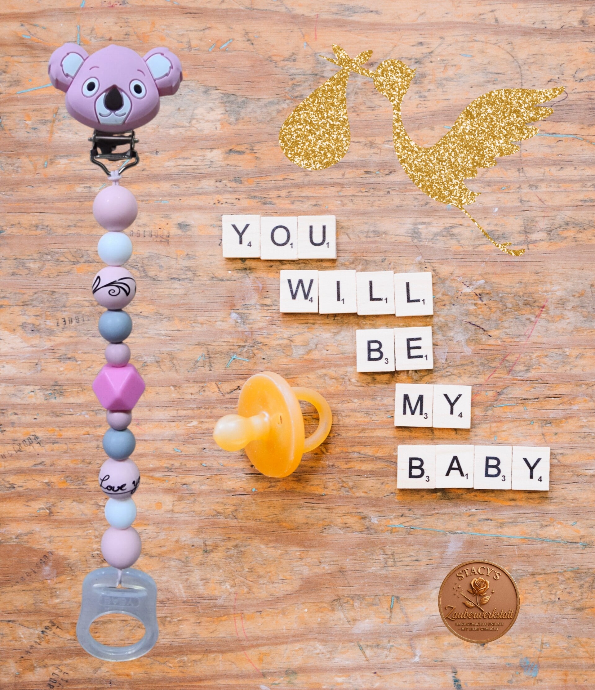 Unsere Schnullerkette bringt mit dem niedlichen Silikon-Teddykopf ordentlich Charme ins Baby-Accessoire-Game! Die weichen Silikonperlen sind perfekt zum Greifen und Kauen. Am Ende sorgt der flexible Silikon-Clip dafür, dass der Schnuller immer sicher und griffbereit bleibt – natürlich schadstofffrei und total babyfreundlich.