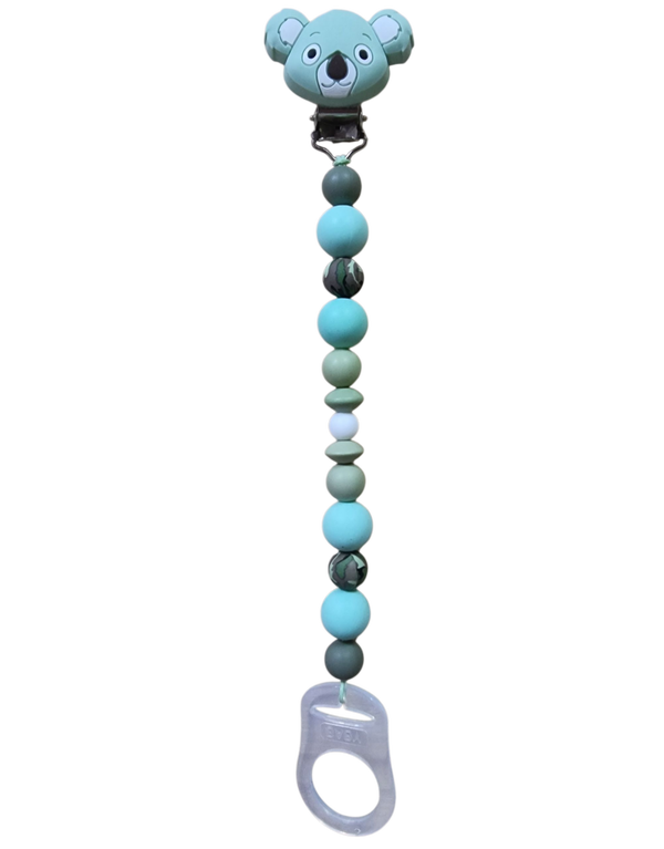 süße Schnullerkette 23 cm in verschiedenen grün Tönen mit liebevollen Details: