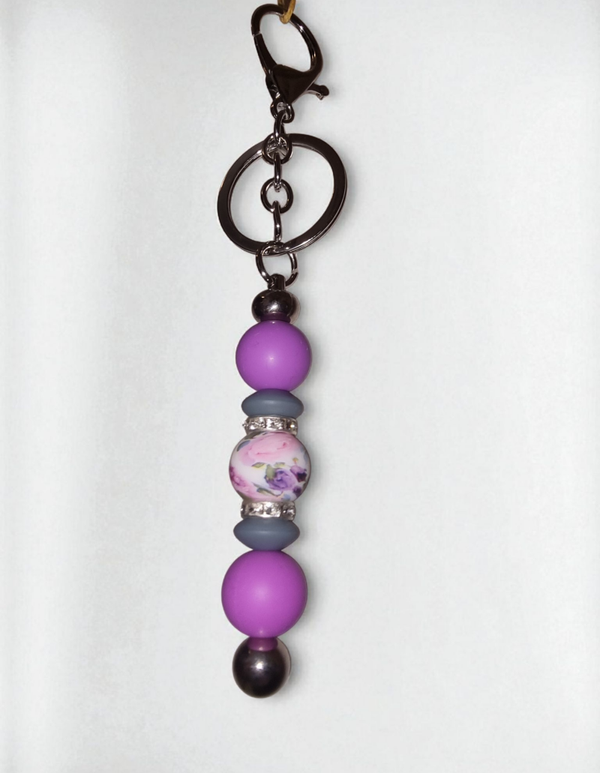Praktisch & charmant - Silikonperlen in schönen Farben, kombiniert mit einer Blumensilikon Kugel und stabilen silbernen Ösenanhänger.