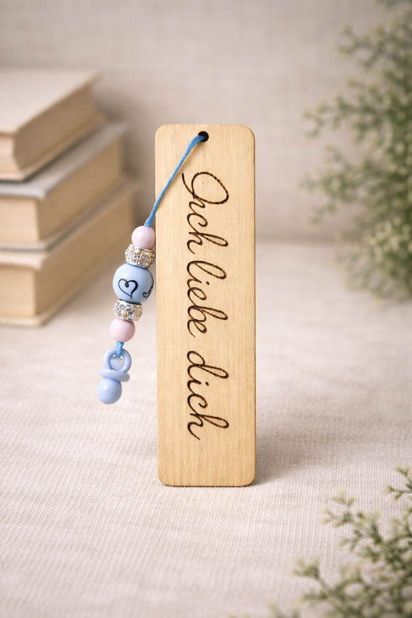 Manchmal braucht es nur einen kleinen Moment der Ruhe - und genau dafür ist dieses liebevoll gestaltete Lesezeichen gemacht. Aus hellem Holz gefertigt und mit einem feinen, eingebrannten Motiv verziert, begleitet es dich durch deine Lieblingsseiten und erinnert daran, kurz innenzuhalten.