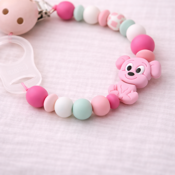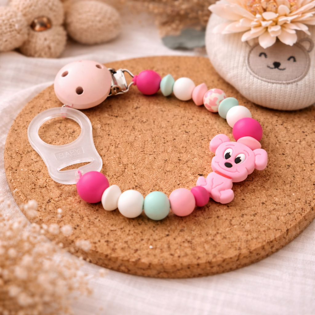 Die Schnullerkette sorgt dafür, dass der Schnuller sicher befestigt und immer griffbereit bleibt. Mit harmonischen Farben und liebevollen Details wird sie zu einem besonderen Accessoires für kleine Wunder.