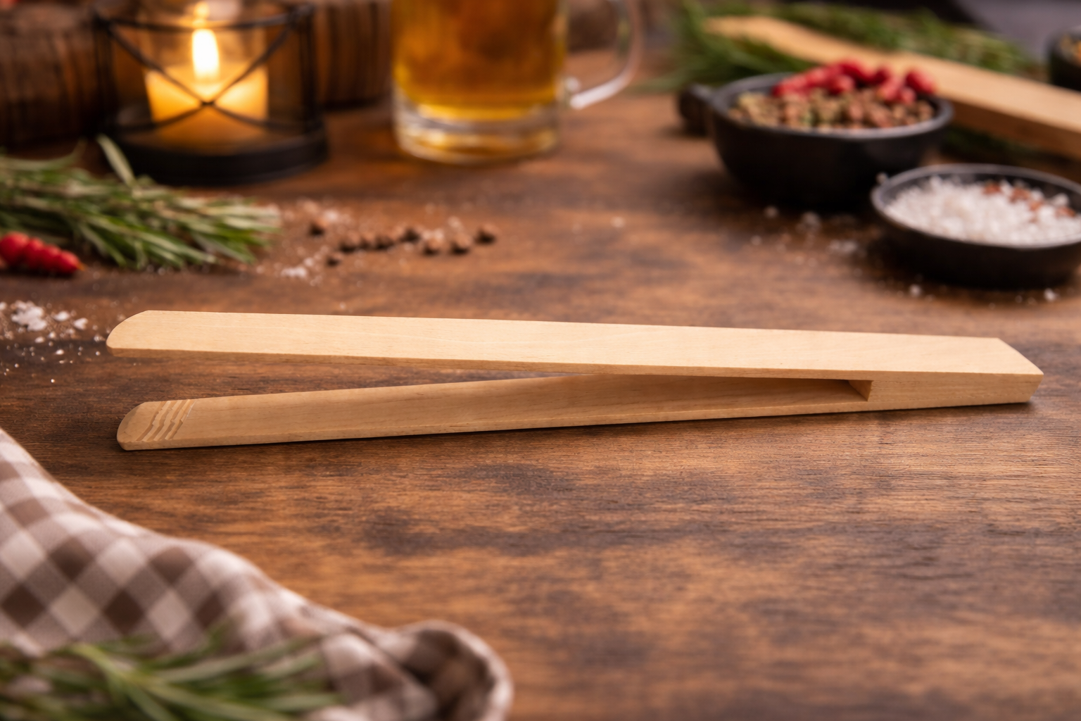 Stabile Grillzange aus naturbelassenem Holz - personalisierbar mit deiner individuellen Wunschgravur.